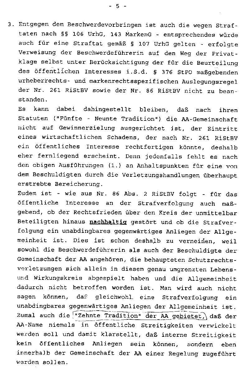 General Attorney of State refuses criminal investigation  against a German AA group and one individual member