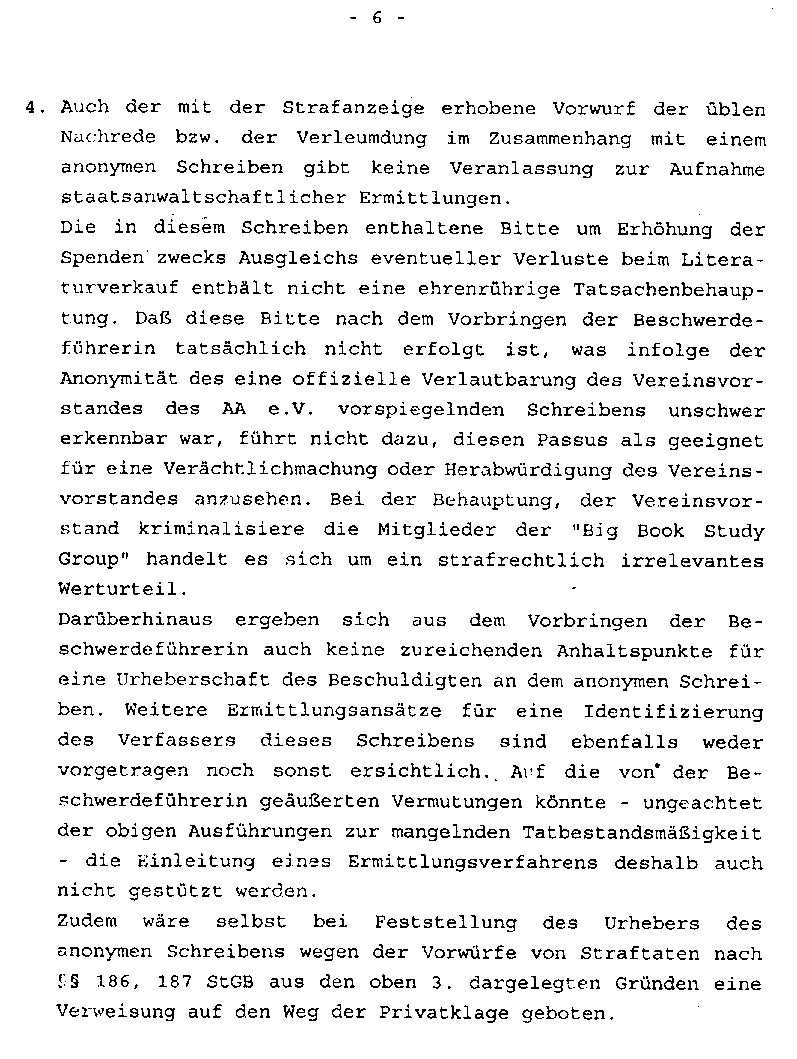 General Attorney of State refuses criminal investigation  against a German AA group and one individual member