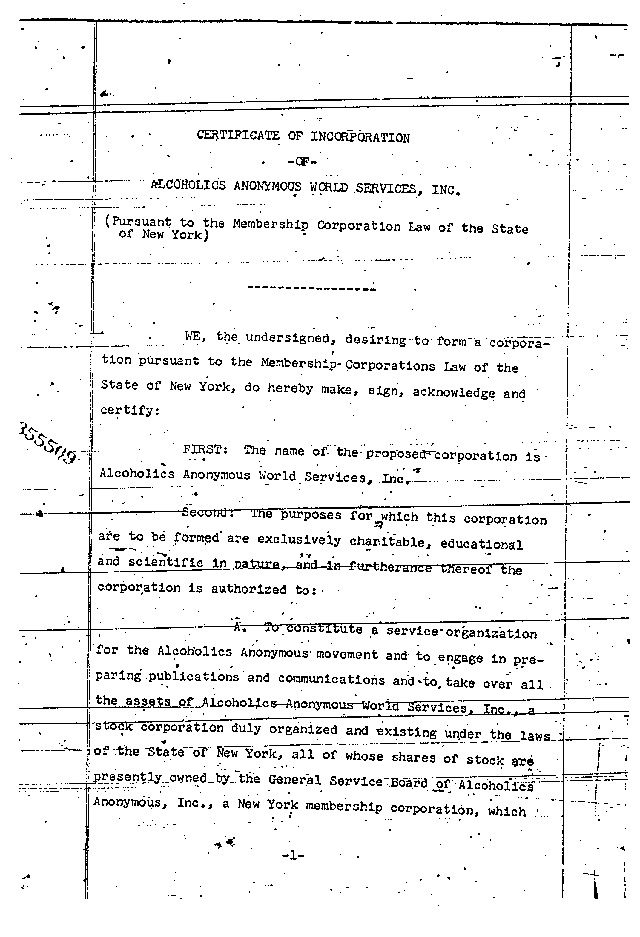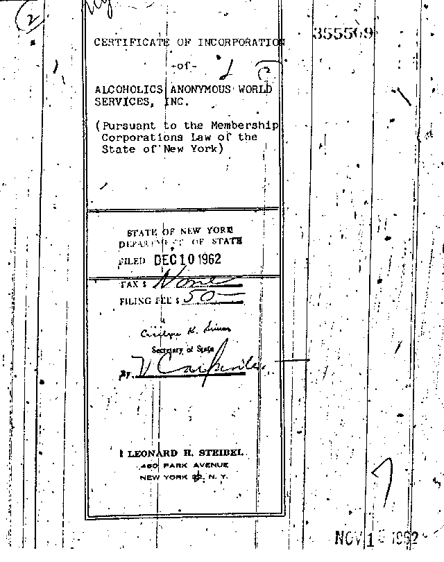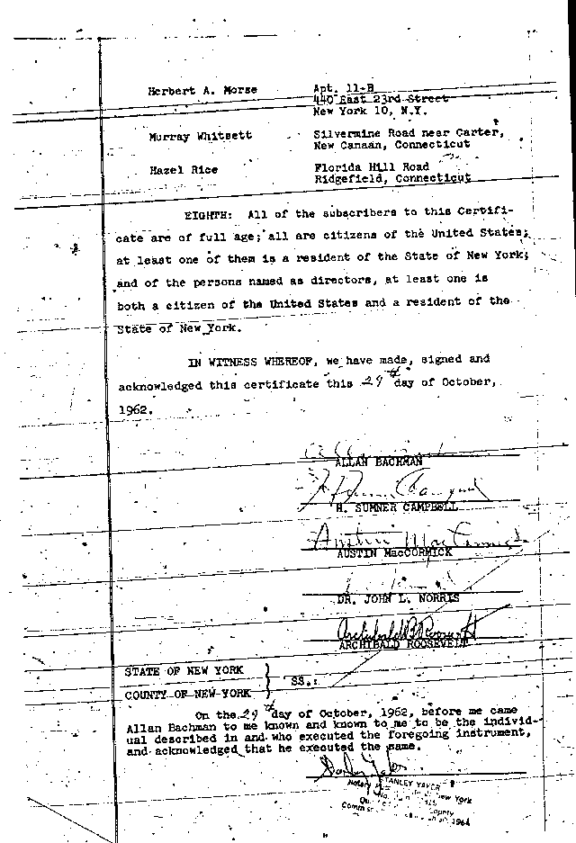 "CERTIFICATE OF INCORPORATION" of AAWS, Inc of December 10th, 1962