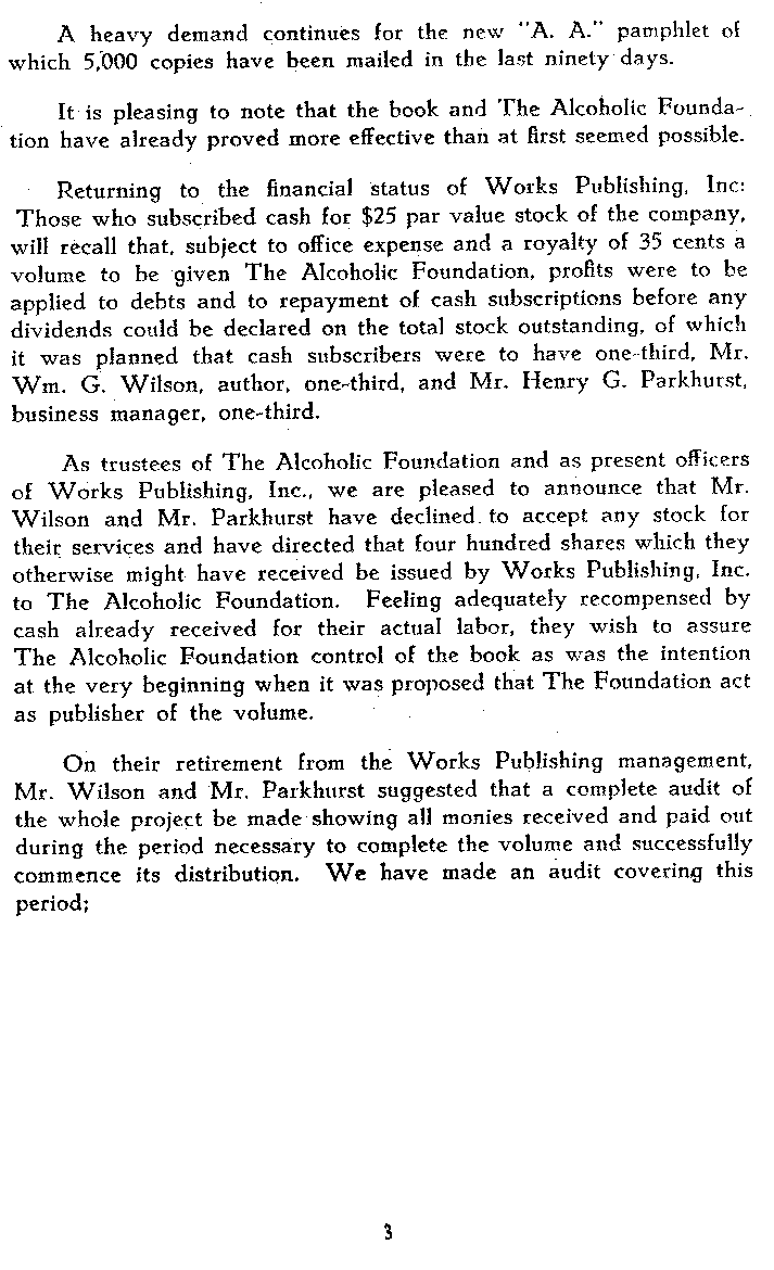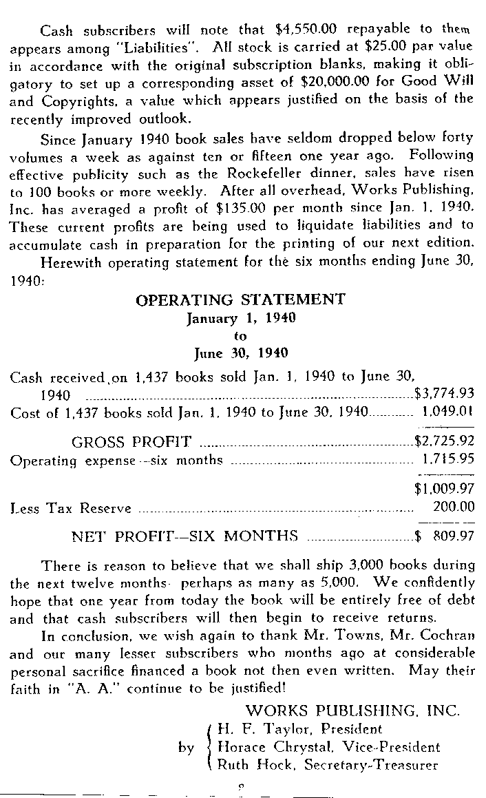 | Documents concerning AAWS history Business Report of Works Publishing in full length ![]()