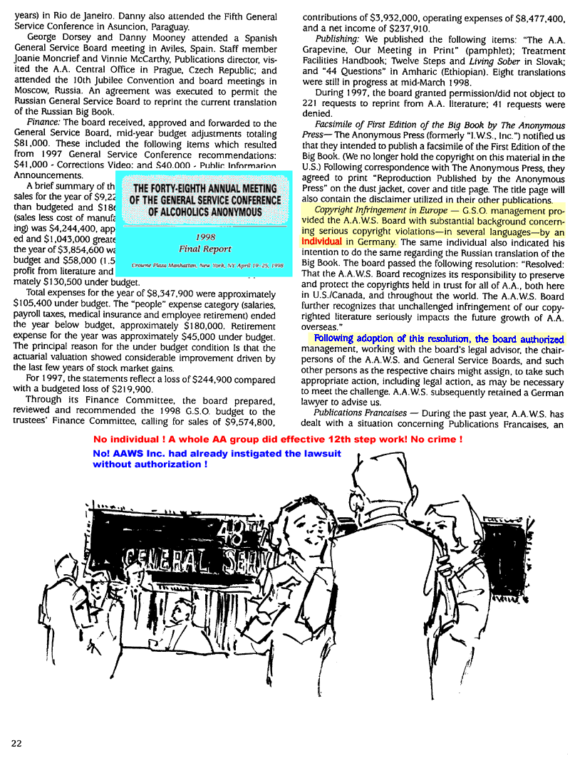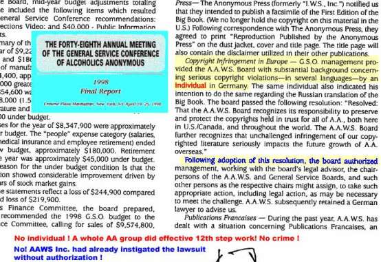 (translators note: Dorsey issued this legal paper without being duly authorized to do so by AA General Service Board Inc., the full owner of AAWS Inc. An AA General Service Board Inc meeting was held only afterwards, when everything was already done and in place.