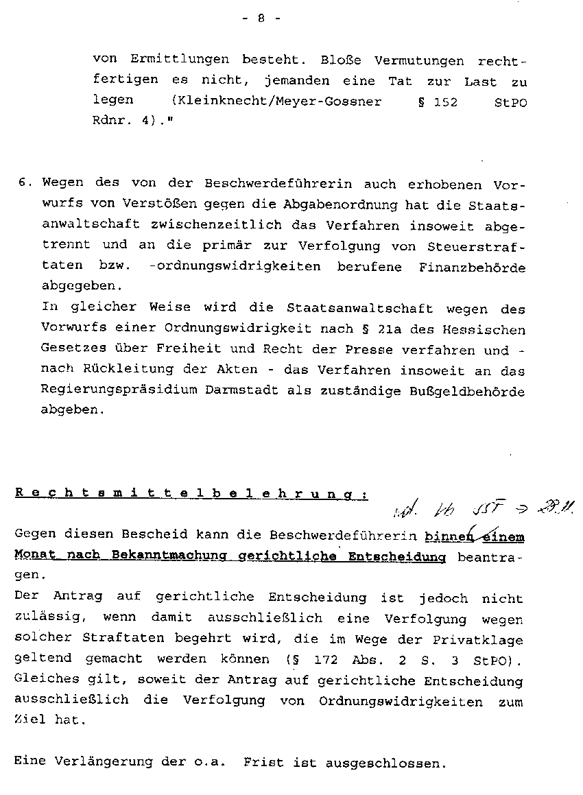 General Attorney of State refuses criminal investigation  against a German AA group and one individual member