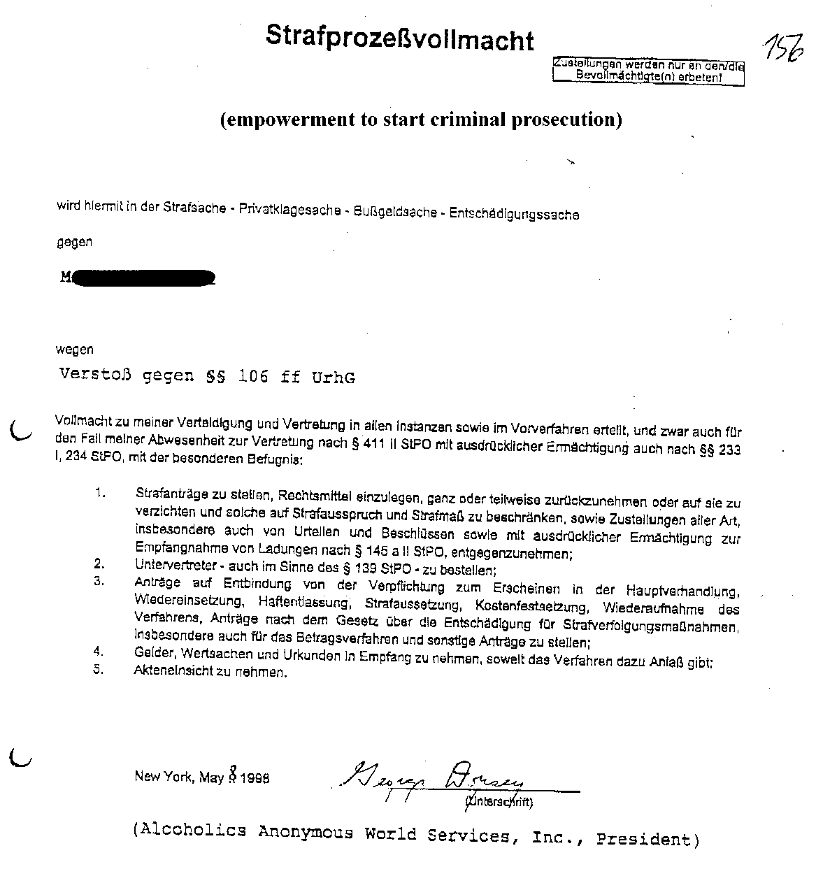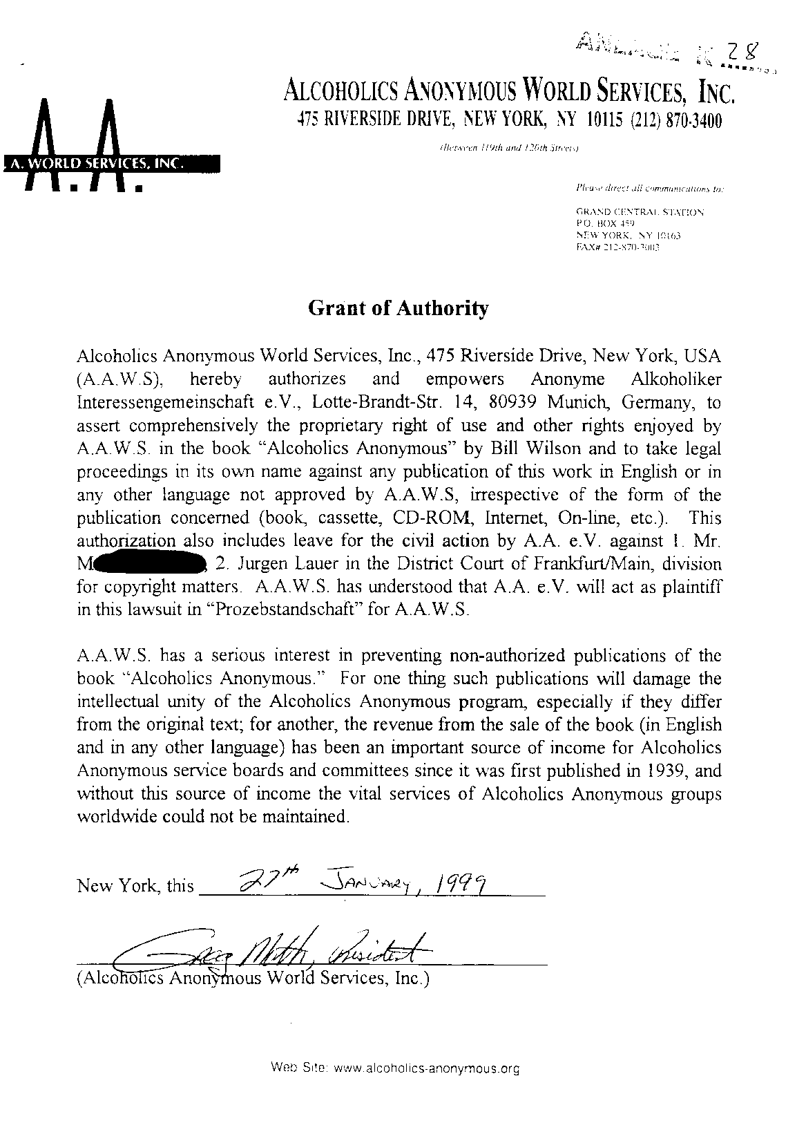 | (Nov7, 1996) M: I wonder if you have a Munich German Edition of the Big Book here (at AAWS, Inc.)? J: Yes we have. Why? M: Can I have it for a moment? G: (suspicious) What for? M: I wanted to show you that in this book at the very places we just now discussed the words "directly" and "moral" are missing. There are other mistakes and wrongs as well -- although it was proof-read and confirmed by AAWS, copyrighted and "conference-approved." The integrity of the AA message is already destroyed. And the aim of Big Book Study Group [BBSG] in Germany is to restore it. G: (dumbstruck, but recovering after a while ...) We of AAWS have no influence on that. You have to work this out within your German service structure! Don't tell me anything but get in contact with them. M: Several AA friends tried to do so for years and years. They still write letters to many service entities, and make requests to the GSC and so on. First of all those things are ignored. If not entirely ignored they are submitted to the editorial committee and afterwards ignored there. Anyhow, corrections were neither promised nor done until today. I can refer to all of this in detail and produce documents of evidence if you or AAWS wants to listen. G: I will not engage in any controversy. I have no opinion on that issue. comment |